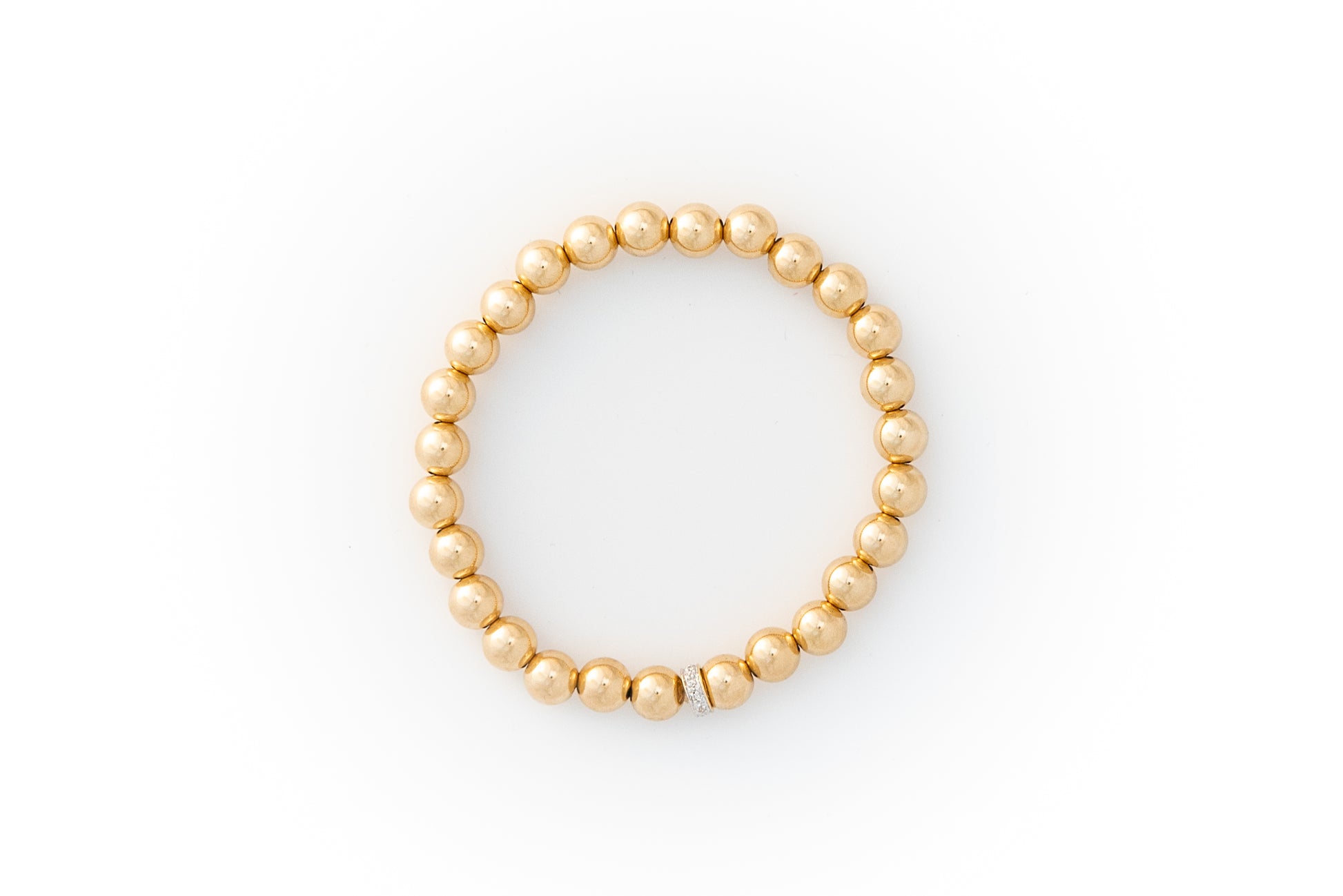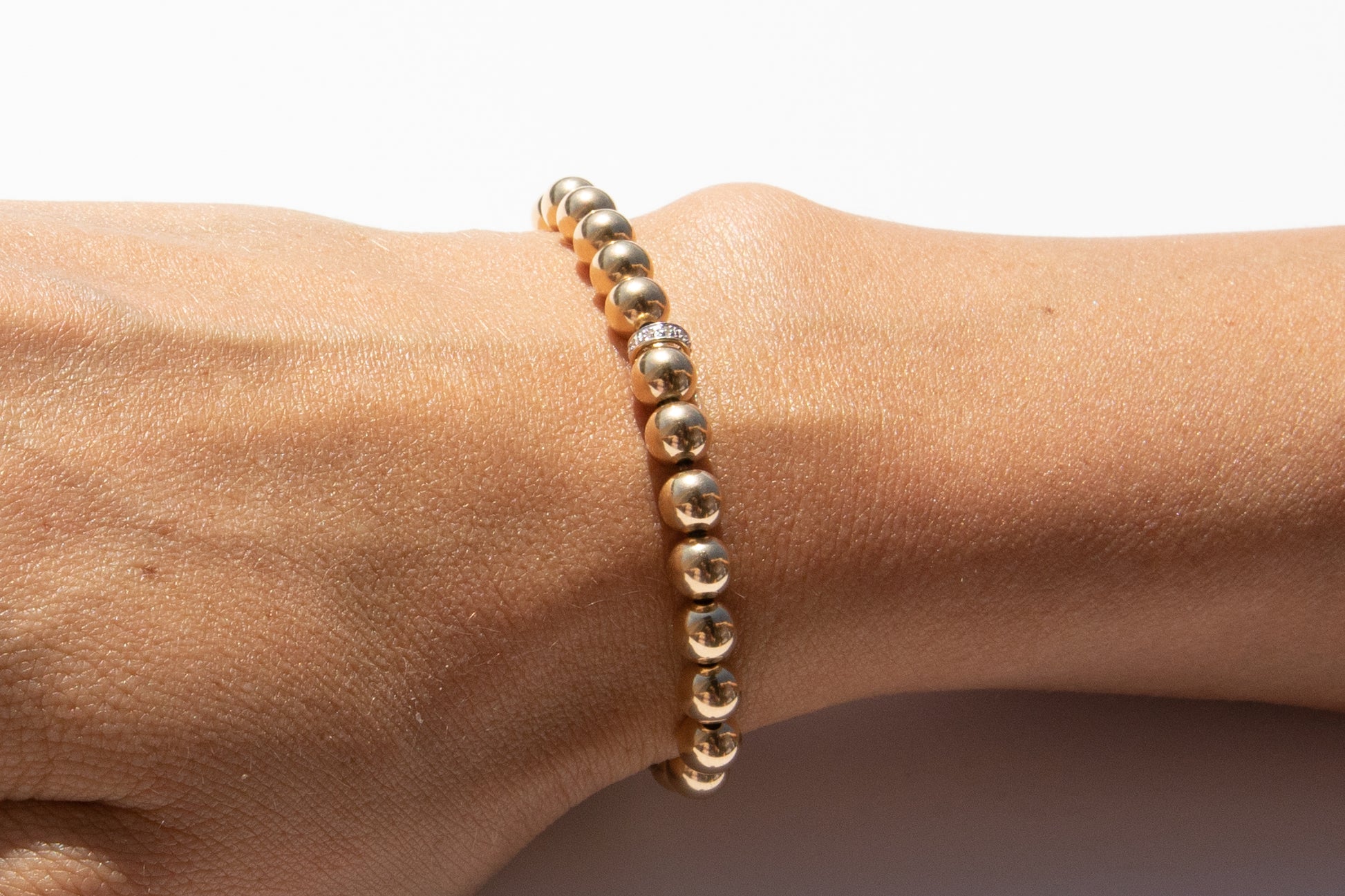 - Medium 6mm gold beaded bracelet with pavé diamond spacer