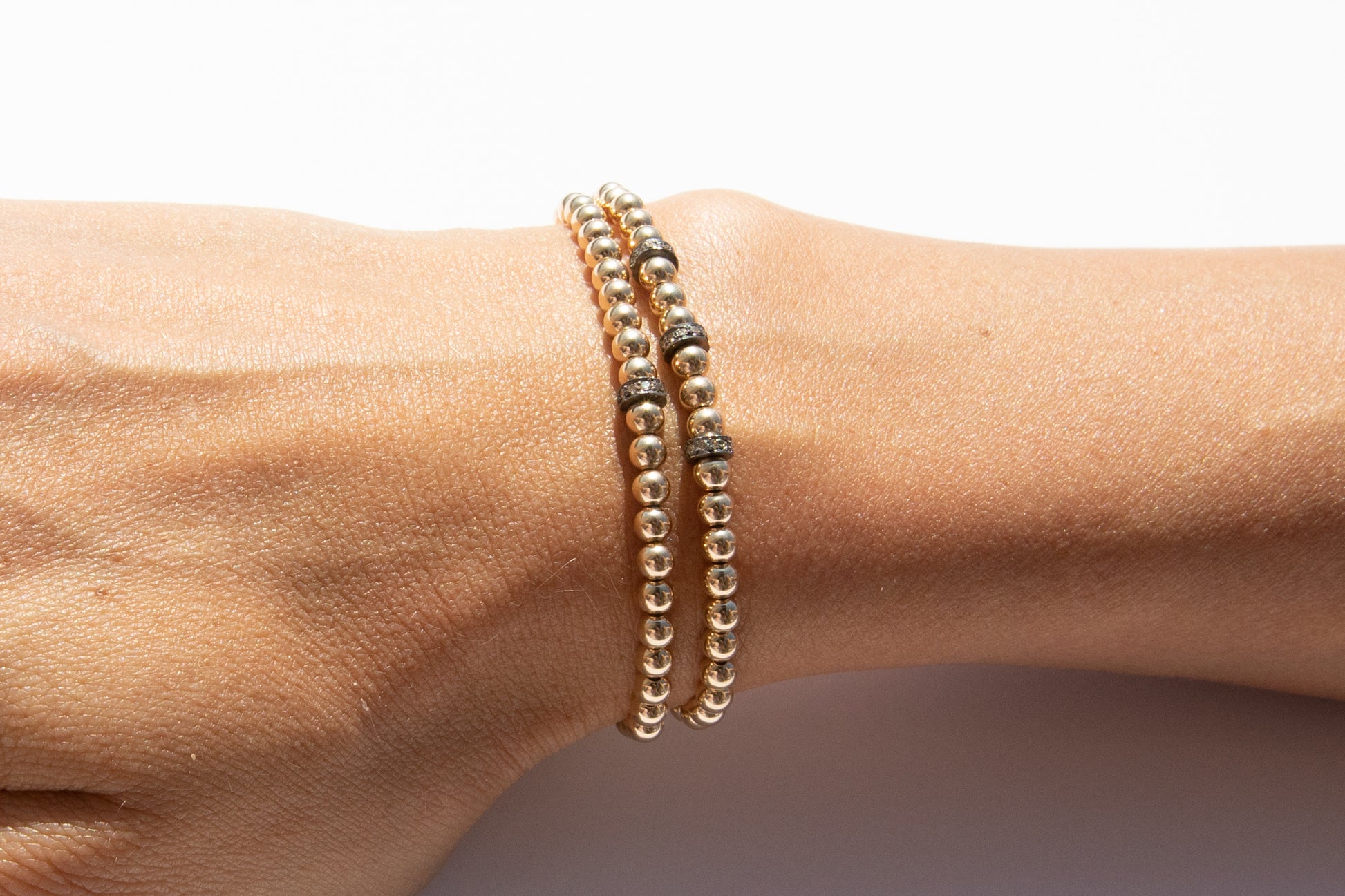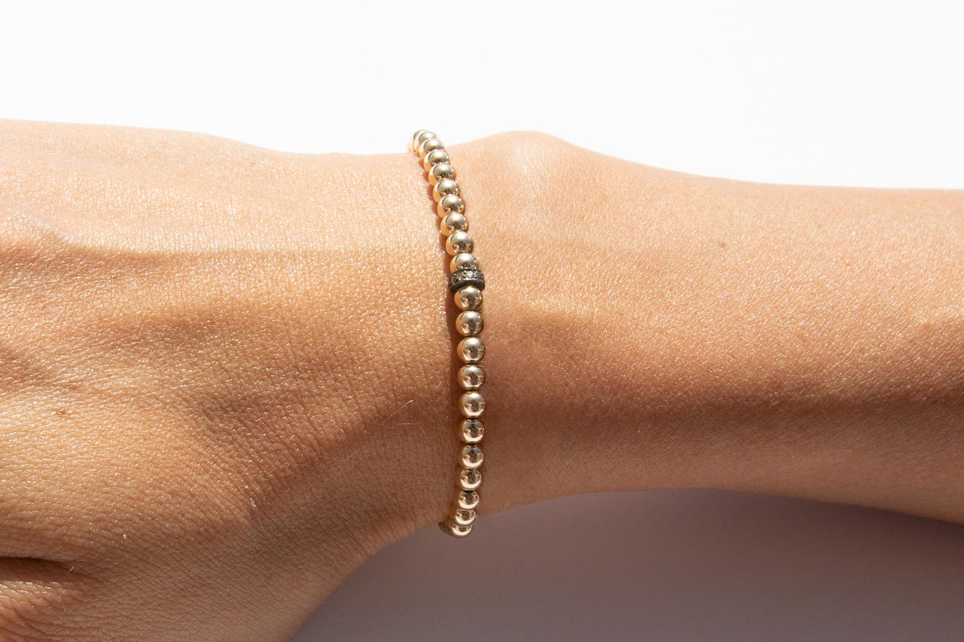 Small Gold Bracelet + Pavé Diamonds in Oxidized Silver (1)