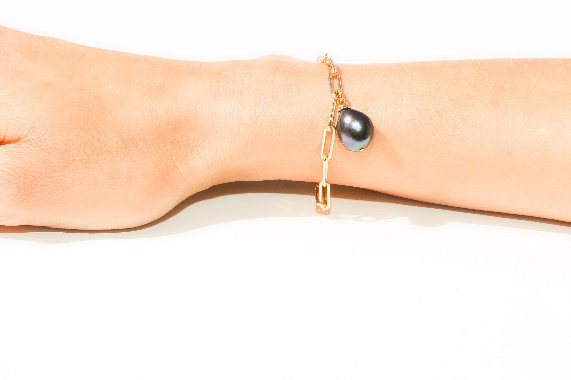 Small Oval Link Chain Bracelet + Freshwater Pearl