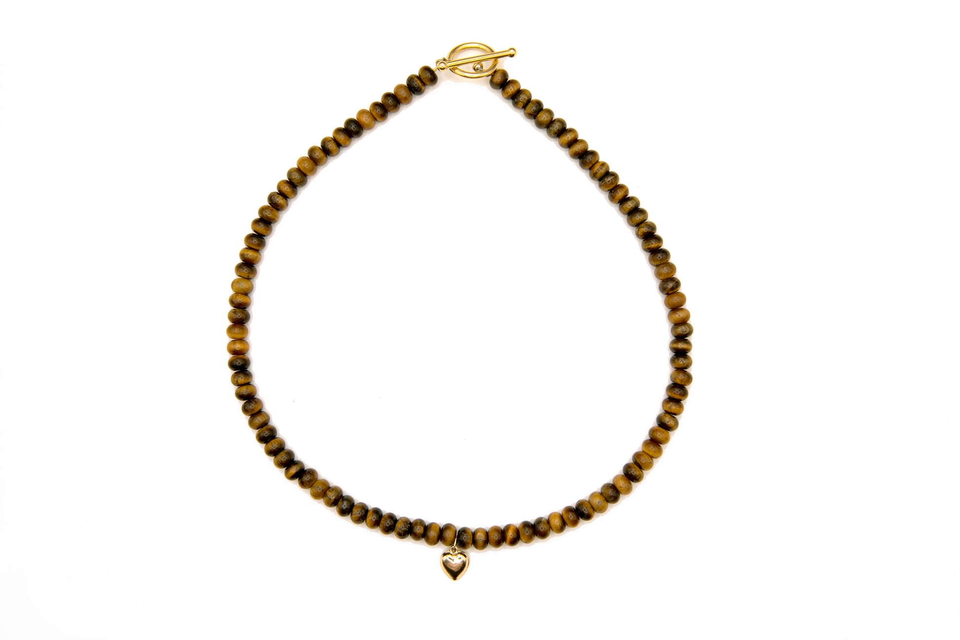 Tiger's Eye Beaded Necklace w/ Gold Heart Charm
